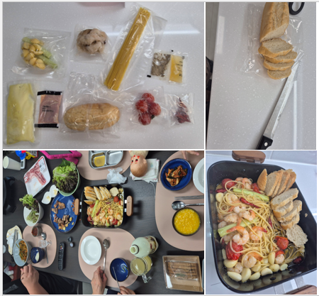 ① 새우 ② 야채(마늘, 주키니호박) ③ 바게트 ④ 올리브유 ⑤ 건고추