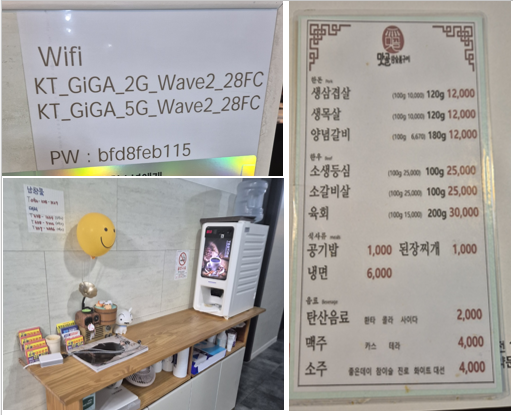대표메뉴 생삼겹살, 목살, 양념갈비