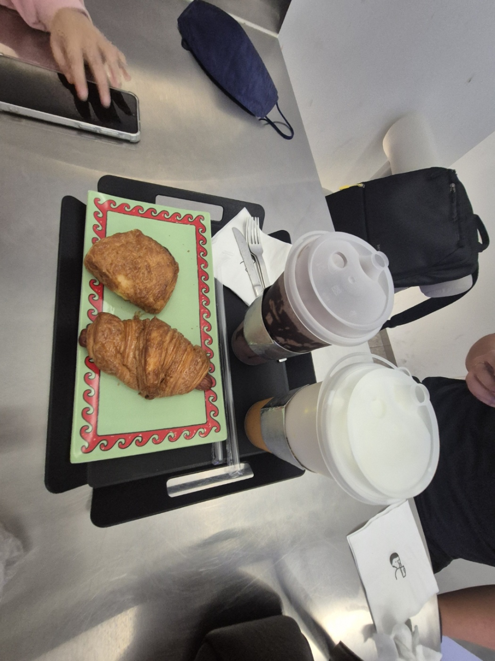 음료는 생초코 라떼와 망고 요거트를 선택했어요. 진짜 망고를 듬뿍 넣어 상큼하면서도 달콤해 만족스러웠습니다.